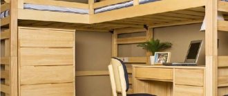 - Шкаф-кровать. Представляет собой модульный уголок со спальным местом на втором этаже. Для детей разного пола рекомендуется устанавливать одну кровать наверху, а вторую оборудовать на полу.