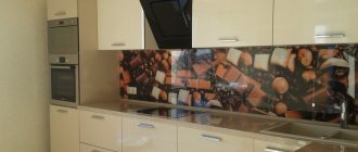 - под аксессуары – фартук может повторять цвет штор, светильников, столешницы, стульев и т. д.