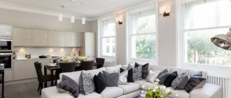 Стенку обыграть советскую в современном интерьере можно, если оставить нижний ряд шкафов, над которыми на разном уровне повесить полки и стеллажи.