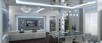 Due to the falling cost of materials and competition in the market for installation services, the cost of suspended ceilings has become so low that other budget options simply no longer make sense; they are dead. In contrast, stretch ceilings look stylish, do not look cheap and are completely environmentally friendly (contrary to popular belief). Among the disadvantages are visible seams, if installation is carried out over a large area, and a fastening edging. You will stop noticing both within a month after moving in.