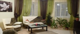 Yellow-green curtains made of thin fabric Curtains with two shades look very harmonious in the interior
