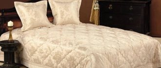 The dimensions of the blanket for the existing bed are selected so that its edges (fringe, lace, frill, ruffle) on a made bed without lying down do not reach the floor by 12-15 cm, otherwise the edge of the blanket will get dirty. Also, the blanket on a free bed should not bunch up at the feet or heads, otherwise the insulation will creep. The size of the blanket determines the amount of materials needed for sewing.