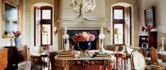 Finishing and decor must be made in the same or similar colors. It is also advisable to choose a specific material: for example, velvet for upholstering armchairs and sofas, chairs and for sewing curtains in the same room. Fittings are important - it’s great if the handles of doors, chests of drawers, clocks, lamps and other objects are stylized in the same way, for example, bronze.