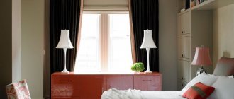 In general, there are a great many asymmetrical variations. For example, the right curtain is made shorter than the left one. This is an ideal option for a loggia door or for a practical arrangement of shelves and cabinets. Another option: one curtain is wider than the other. If a lambrequin is used, it can change its length diagonally, giving the window an unusual look.