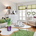 The easiest way to think about the design of a living room with an area of 15 square meters. m, when it is used only for receiving guests or gatherings with the whole family. In such a room you don’t need a lot of furniture, just a sofa, a table, a few chairs or poufs and a TV on the wall.