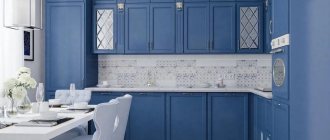 If in the case of modern styles it is more appropriate to use closed cabinets, then when arranging a kitchen in a “classic layout”, liberties in the form of a free combination of open, closed and combined options are quite acceptable. At the same time, everything that should be hidden from prying eyes is hidden behind the doors. Various accessories and decorative items are placed on open shelves, designed to directly participate in creating the desired atmosphere of the room.