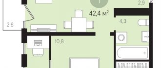 - the total area of the apartments is small, the most common sizes are from 30 to 46 meters;