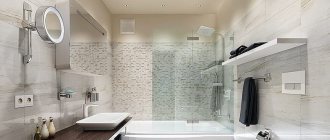 The main disadvantage of these rooms is cramped space and lack of natural light. A glossy ceiling in white, blue or pale gray will help compensate for this.
