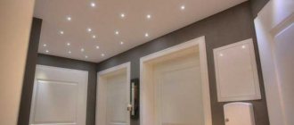 For a narrow room (for example, a corridor), choose a ceiling with transverse contrasting stripes. Bright walls and a light glossy canvas will suit a short person. It is advisable to focus on white or shades of the cold spectrum.