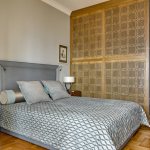 The arrangement of furniture must be carried out based on the geometry of the room. In the case where the room is too elongated in length, massive cabinets at the end walls will visually bring the room closer to a square shape.
