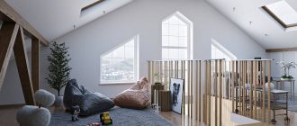 This is an area within the house where you can arrange anything you want. This could be a bedroom, office, dressing room, living room and even a gym. It all depends on the dimensions of the room and the angle of the roof, which can eat up free space, which already prevents the installation of certain furniture. It is important to arrange the furniture to smooth out the asymmetry of the room, which can also be achieved by vertically elongated decor, which helps to visually increase the height of the ceilings.