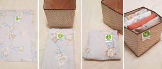 - vertical storage . The inside of the drawer resembles a basket with dividers. The most convenient option. All the frying pans are in sight, making it easy to get what you need. Lids from pots are also inserted into the dividers; there is room for removable handles and stands.