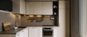 Use corner cabinets and shelving - this space is usually not used anyway. Build a cabinet or washing machine under the sink to save space. And be sure to use organizers, sets of stands, boxes of different sizes and other little things - this will help maintain order.