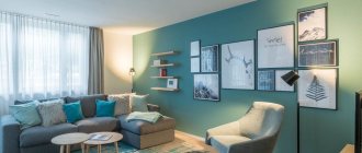 Round shapes that smooth out the angularity of the room work well - round mirrors, radial corner pencil cases, photographs, lamps and panels of different shapes. Add dynamics: for example, place a large lush flowerpot with a tropical palm tree in the corner. Let it be something unexpected that you can catch your eye on and take your mind off the layout.