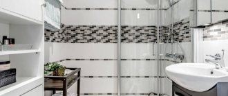The place where they take a shower is sometimes not designed as a cubicle, but is simply separated by a glass partition. In this case, it is important to properly organize the drainage so that puddles do not form in the room.