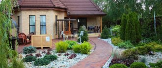 With the help of various landscape design elements, the overall style of the entire site is created. When choosing plants, it is important to remember the growth prospects of the seedlings, so as not to turn the garden into unkempt thickets. Flower beds should be created in well-lit areas, and periwinkles, mosses or ferns should be planted in shaded areas. The southern walls of a house or gazebo can be protected from the sun by planting small trees or shrubs along them.