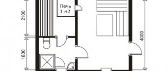 The 3x4 bathhouse design is no different from its larger relatives in terms of the principle of insulation and the creation of a “thermos effect” in the steam room. The estimate includes the use of all modern insulation and insulation materials used in bathhouse construction. The interior spaces are also lined with wooden clapboards made from aspen, and the building timber is made from coniferous trees - pine or larch.