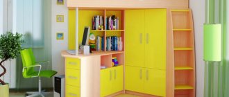 The best option for a schoolchild is a full-fledged set with a built-in table, which will accommodate all the necessary educational and developmental supplies, as well as household items. It should be understood that the functionality and bulkiness of such a model are directly proportional.