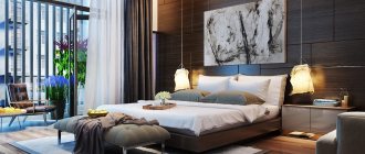 - Если на стене висит телевизор, то светильники устанавливают в линию у изголовья кровати.