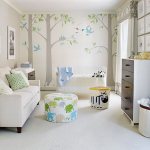 - Выбирая основные покрытия с узором, стоит найти однотонную или фактурную полосу для размещения фотографий на стенах. В том же тоне подбирают портьеры.