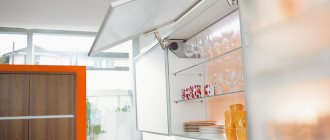 Обратите внимание, при открывании дверцы вверх необходимо ставить газлифты с обеих сторон. Иначе Вы устанете регулировать фасад. В закрытом состоянии он будет перетягивать фасад вверх со своей стороны. Усиливает беду, расположение дверок в ряд.