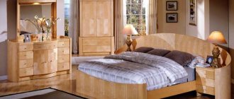 - Диван-трансформер. Состоит из шкафа с полкой, раскладной кровати и дивана. В дневное время суток кровать скрыта в шкафу.