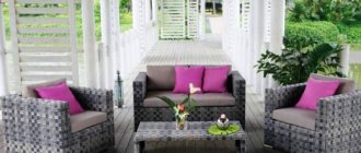 Правильное сочетание цветов визуально увеличит маленькое помещение, а большому прибавит ощущение свободы и свежего воздуха. Сочетание большого количества зелени во дворе с белой мебелью является залогом хорошего и умиротворенного отдыха.