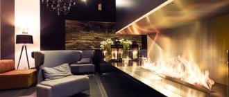 Пристеночный камин в интерьере гостиной Источник yandex.ru