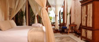 В качестве материалов изготовления лучше выбирать натуральное дерево, металл. Для некоторых видов интерьера подойдет также стекло, пластик. Особое внимание следует уделить кровати: ортопедический матрас средней жесткости, такая же подушка позволят сохранить здоровье спины, а сон сделать полноценным, крепким.
