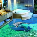В качестве напольного покрытия подойдут искусственные строительные материалы: кафель, керамическая плитка. Если позволяют финансы, то можно использовать мрамор или гранит. Это подчеркнет солидность и естественность дизайна.