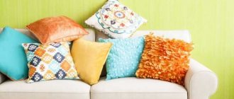 Для создания спинки можно использовать также небольшие диванные подушки — прямоугольные, круглые или даже в форме валика.